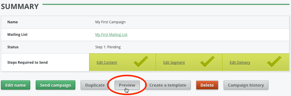 Follow the steps in this section if you’d like to send a preview of your campaign: