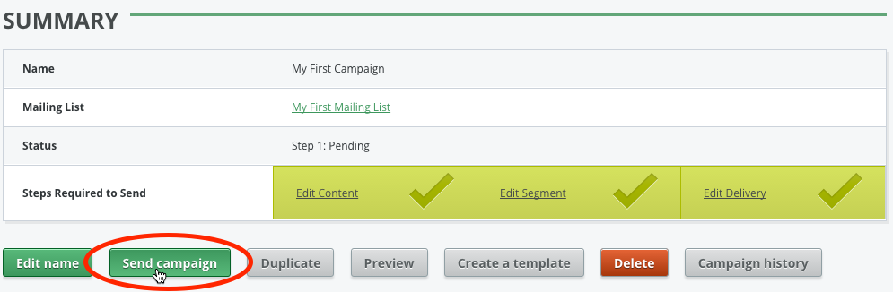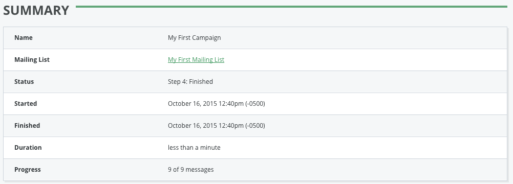 - EmailIQ now takes you to a confirmation page, where you can review the details of the campaign that’s about to be sent. When you’re finished with the review, click
