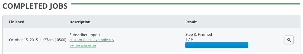 Congratulations! You’ve created a mailing list, created a custom field, and imported subscribers into the mailing list. You can move onto creating your first campaign.