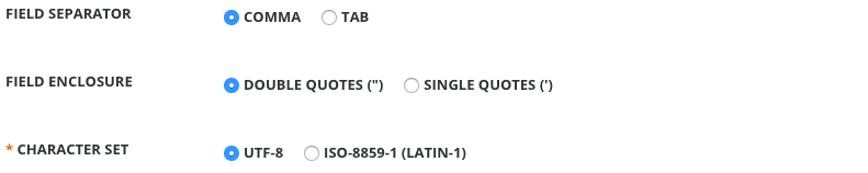Field Separator,Field EnclosureandCharacter Setfor the file you’re importing: